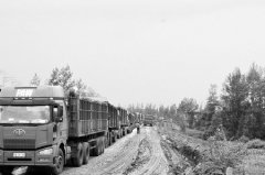 拉煤车拥堵严重。 司机向泥泞的便道撒土。 昨日,一名外地来榆林拉煤的货车司机向本报反映,称自己在榆阳区运煤专线牛家梁段被堵了三天时间。记者了解到,堵车是因为道路塌陷