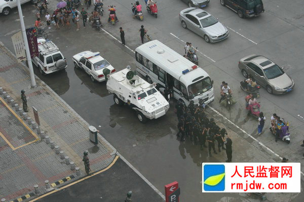2012年6月22日7时30分,通往广东省惠州市惠东县富星商贸城的交通要道被禁止通行,各个路口全由武警和交警把守。