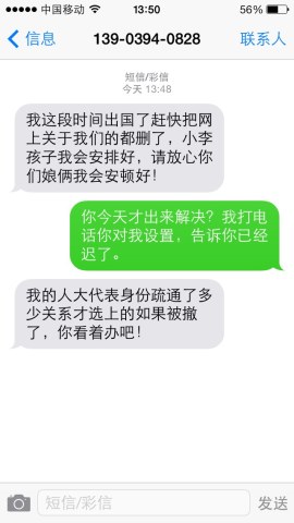 图:河南省人大代表罗志元短信称:人大代表是靠疏通关系得来的
