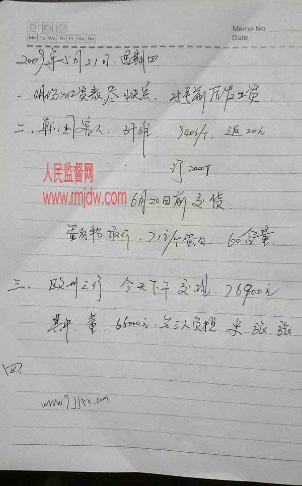 今年45岁的张雷达有写日记的习惯,上面就是他的日记内容。张雷达系山东照东方纸业集团旗下山东德州福源生物淀粉有限公司总经理。