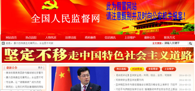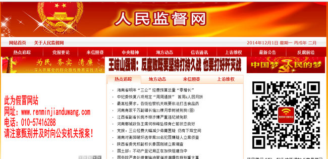 日前,接到网民民投诉,有人制作假冒的人民监督网,冒充人民监督网工作人员,骗取钱财。