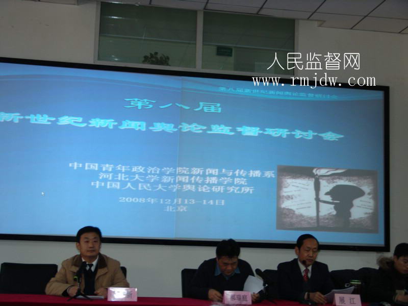 人民监督网北京讯:第八届新世纪新闻舆论研讨会于12月13日在北京召开,国内众多新闻研究领域的专家学者和部分知名记者参加了这次会议。会议是由中国青年政治学院、河北大学新闻传播学院和中国人民大学新闻传播学院联合主办的。