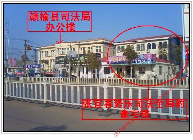 位于黄海东路赣榆县司法局隔壁东侧的独宅别墅楼(黄海路93号),土地系其1998年在原城东乡(现属青口镇)做乡长时,违规从该乡芦庄村的耕地中划去的,他还违反“领导干部不允许建私房”的规定,而且利用手中职权以极低的价格违规建造了豪华气派的别墅,目前已成为当地的一景,从照片可以看出楼的豪华气派!该楼规模、高度堪与相邻的县司法局等齐,真是“组织部长一家势压司法全局”啊,了不得!一个近百人的司法局办公楼也难比富豪部长的一座楼!张宜春经常扬言:“(楼房)东为上,我一人压倒司法局!”把司法局局长气得七窍生烟。