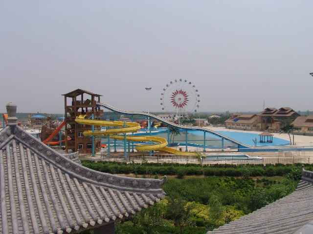 距离苦池水库一公里外,记者看到美天游乐园巨大的摩天轮矗立在水库中心。进入游乐园,记者发现在这个有16层楼高的摩天轮下,有海盗船、极速飞碟等各式各样的陆地游乐设施。此外,还有以300米长的漂流河、3000平方米的造浪池和水上冲浪为主体的“晋秦豫最大的水上世界”,其占地30亩。