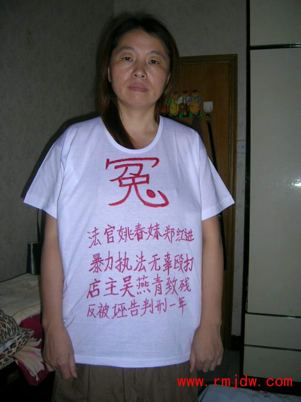 吴燕青对记者说,2007年3月6日下午,我到公、检、法、县委、县府、政法委等部门去发网站刊登的“浙江淳安法院暴力执法无辜店主致残文章”。当到县政法委去时,政法委副书记(2003年时淳安县法院分管执行的常务副院长)汪孝群问我们发了多少,发到什么地方,我说都发了,发了好几百张,我问他发这个犯不犯法的,他说发这个是违法的,扰乱治安的。又质问我记者叫什么名字,什么电话号码,记者是怎么知道的,我说是上网知道的,名字和电话号码那上面有的。我说发这个东西目的是让领导知道,你说我发这个东西犯法,那姚春妹把我打成骨折都没有人去抓她,为什么?后来,汪孝群说叫我们走正规渠道,我说我们到处告状上访五年了,到现在都没人理睬我们。