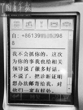 29日12时左右,石队长短信催促王志昌提交他妻子的诊断证明,“我急着给领导汇报”、“对你们一家有好处”。