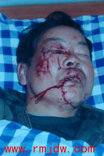 本图:在公安派出所门口被打伤的村民