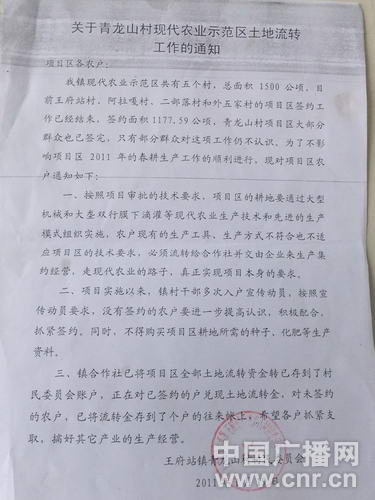 这份文件还要求没有签土地流转协议的农民不能买种子化肥备耕,很多农民忧心忡忡。