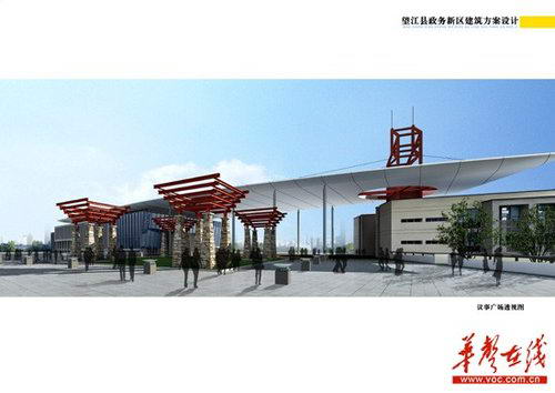 望江县“政务新楼”主入口透视图