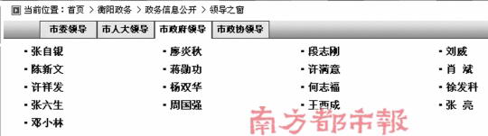 南都记者在常宁市政府网站和其所属的衡阳市政府网站上也发现了长长的领导名单,常宁市政府网站上列出的市政府领导共有19人,包括了1名市长,1名常务副市长,5个副市长,2个市长助理,2个正县级干部,4个副县级干部,1个调研员,2个副调研员和党组成员、办公室主任。