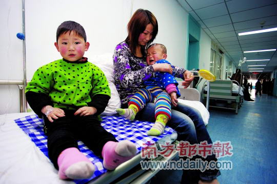 昨日,疑似食物中毒患者在甘肃省平凉市医院接受治疗,患者以14岁以下儿童居多。 新华社发