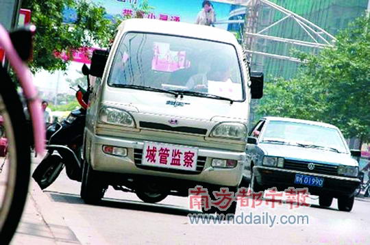 ●2005年6月10日,河南日报报道称,许昌市城管局在执法车上挂上自制的“许管N o:××××”字样“牌照”上路执法。不仅如此,一些城管车辆干脆什么牌照都不挂也照跑不误。