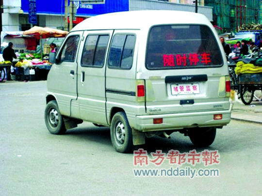让很多网友觉得意外的是,有些地方这些无牌的城管执法车还有自编号。据中新网此前报道,记者在河南淮阳县采访时发现,该县城管监察车在大街小巷来回穿梭,无一辆悬挂机动车牌照,车辆的前面都是自制车牌“城管002”,“城管003”,甚至还刷上了“随时停车”的字样。