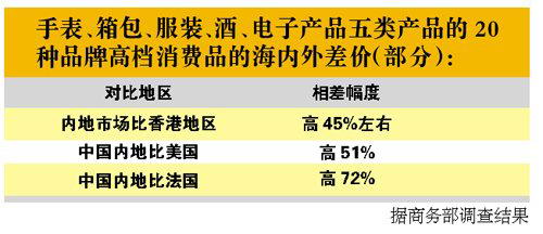 因此,商务部部长陈德铭(专栏)屡次在公开场合表示,我国将解决部分奢侈品在国内的销售价格高于海外的问题。