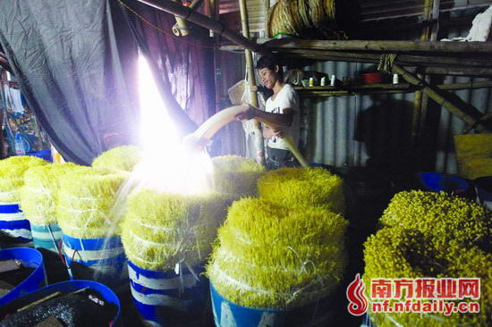 “可以让豆芽长得快,而且还有防腐的功能”。作坊老板说,他所知的在东莞做豆芽的作坊,没有一家不是这样做的,“他们都是这样做的,我也没办法啊。”