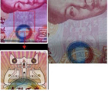 同时,袁银龙还介绍,人民币防伪技术分公众防伪技术、专业防伪技术和设计防伪技术。所谓“猫图案”应该属于设计防伪技术,“该技术属于国家机密”。袁银龙判断,该图案像是古代元素与现代卡通图案的一种变形,但具体是什么尚不清楚。