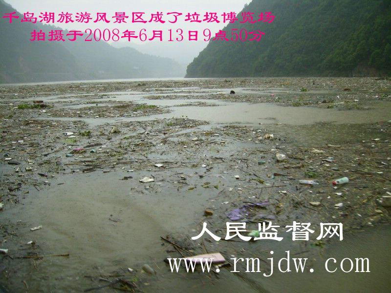 · 大家好!我是仁政,对于水上垃圾我曾经发表过一篇评论,可是没到二天就被删除了。如果再次删除我,那么,我会对人民监督网的思想意识产生怀疑。就垃圾而言,千岛湖的霉季是这样的,因为它是人工湖,洪水从四合面八方