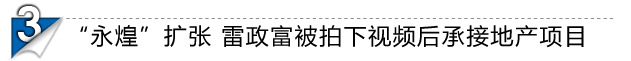 控股永煌投资咨询的永煌实业,在雷政富被拍下性爱视频一个月后的2008年3月13日成立于北碚,当时名叫重庆泰和房屋拆迁有限公司,注册资金500万元,其中肖烨持股90%.