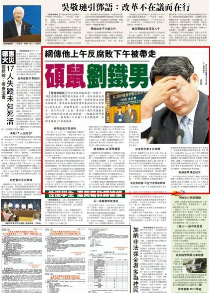 【香港商报讯】昨日内地网络风传一个帖子,内容是揭发原国家发改委副主任、能源局局长刘铁男贪污受贿一事。该帖声称,刘铁男贪污受贿巨额款项,仅存款和各种有价证券就折合人民币2.4亿元左右。刘被带走时,公安部门对刘及妻子、儿子在北京、太塬、青岛的5处住宅搜查出在7间银行开立的25个账号、7个国家的外籍护照25本,刘铁男一人就有12本外国护照,并随身藏有12张飞机票。