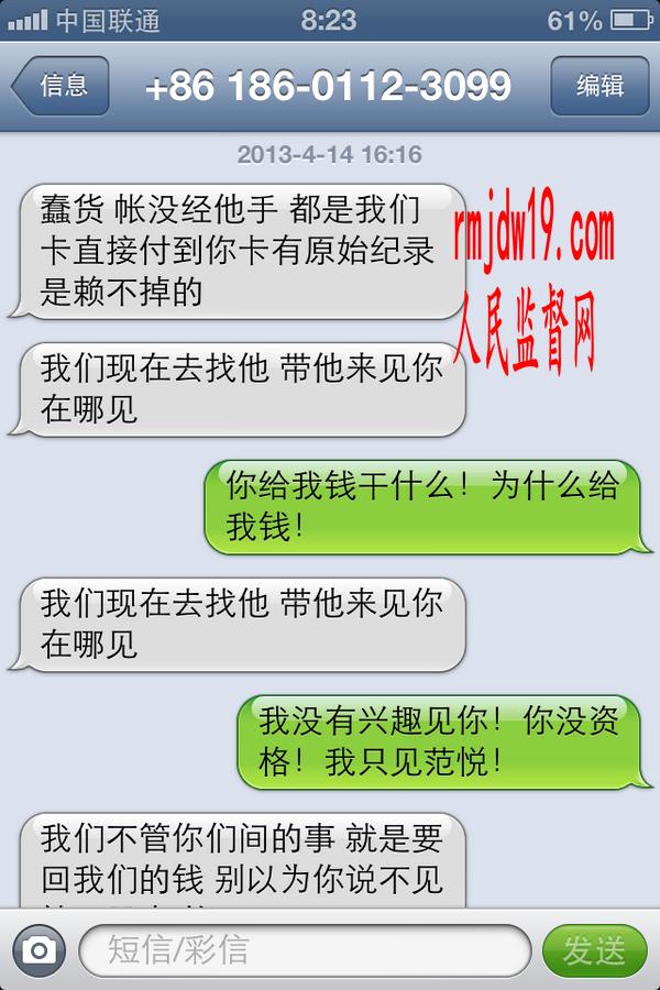 · 曝光得好啊。奸商听了官员的话,把钱打到第三者帐户,向第三者要钱,好像很有理。殊不知,这会被真正的商人笑话,因为商人重视市场规则。因为他们根本不是真正的商人,他们是官员的狗奴才。