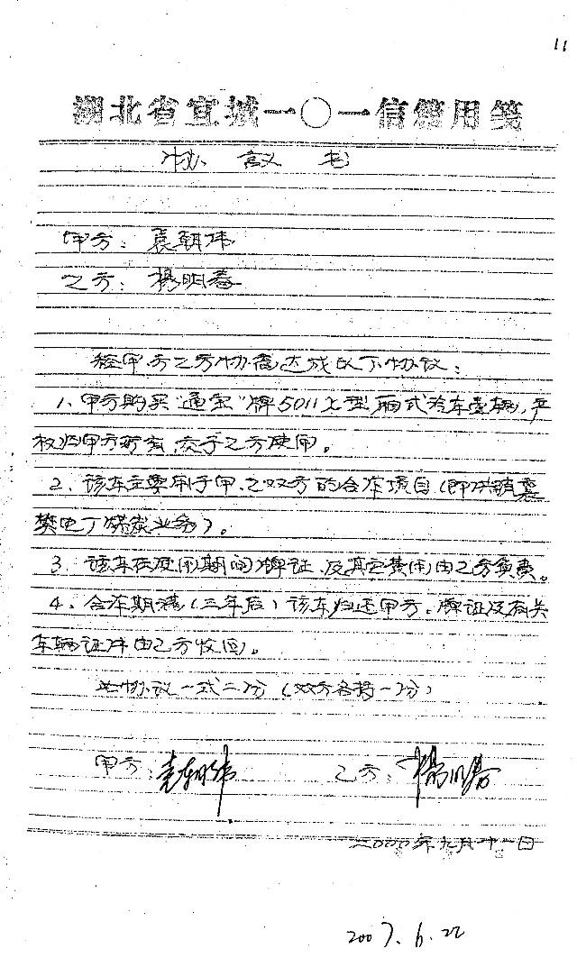 5、杨明春的修车说明——杨明春在卷中(52页)承认了该修车说明,其直接证明了襄樊分公司撤消后杨明春仍留在襄樊办事处使用该车催收个人外欠款和联系业务的事实。