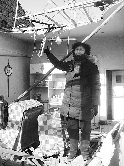 1月21日6时左右,蒙素龄赶到到家,眼前的景象让她惊呆了。“房子外边的铁丝防护网被剪断了,房顶已经被拆没了,家里的所有财产、家具全被拆掉的房顶埋了进去。”屋子里、院子里到处都是拆下来的瓦砾,甚至被拆下来的檩条、暖气片等稍微值钱点的东西都不见了。
