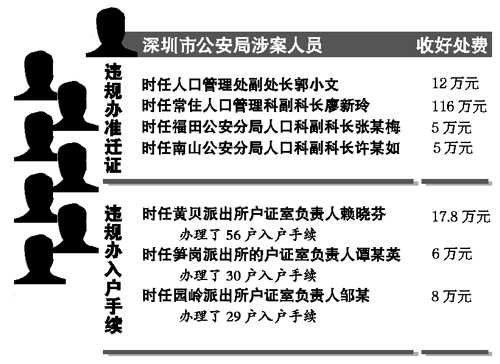 本报深圳讯 (记者王纳)身为原深圳市公安局人口管理处副调研员的卢小琼,在一个月之内,就给115户300人办理了入户手续,收受贿赂金额213万元,并用这笔钱来疏通关系,同时涉案的另7名警员也是警方相关部门的负责人。昨日,该案在深圳中院开庭审理,52岁的卢小琼出庭受审。