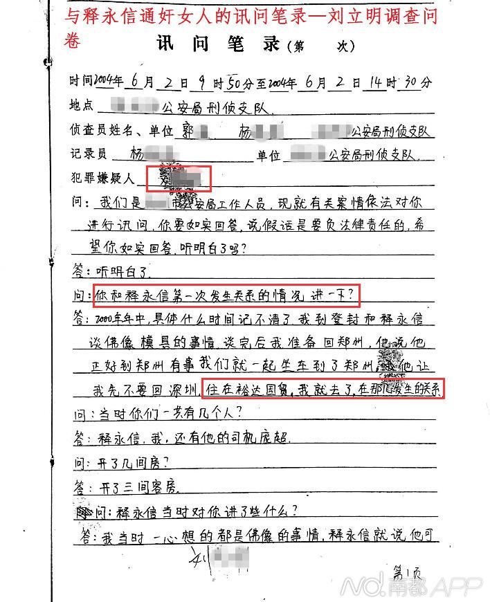 “他让我先不要回深圳,住在裕达国贸,我就去了,在那儿发生的关系”,刘某在疑似笔录中回答,她在多地多次和释永信发生过关系,还“怀过一次孕,两个月时做掉了”。