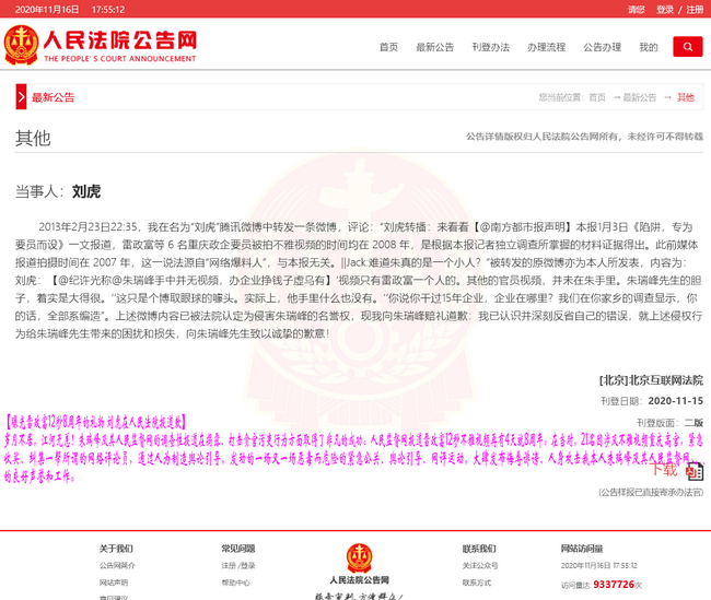 曝光雷政富12秒8周年的礼物 刘虎在人民法院报道歉