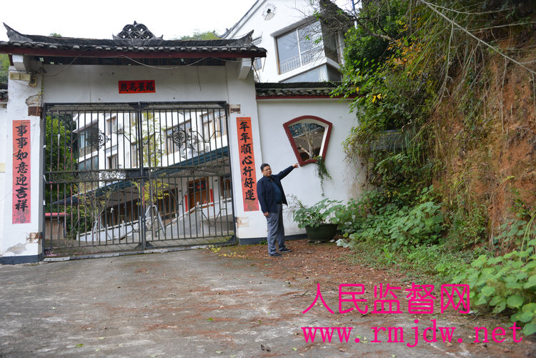 图:娄底青少年健康人格研究院院长毛智文手指茅草遮掩的研究院牌子