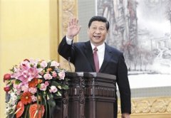 2012年11月15日,新当选的中共中央总书记习近平和其他六位政治局常委在北京人民大会堂与中外记者见面。图为习近平向记者挥手致意。中新社 廖攀 摄 让大家久等了。这是2012年11月1